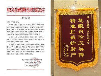 近期,客户陈女士带着一面写有“慧眼识险筑屏障 精准拦截护财产”的锦旗,来到长安银行西安长安区支行营业室。她反复向长安银行工作人员表达感谢:“多亏了你们心细负责,不仅保住了我的血汗钱,还帮我追回了被骗的定金,真是帮我们家解决了大麻烦!”这背后,是长安银行成功拦截一起电信网络诈骗的暖心故事。