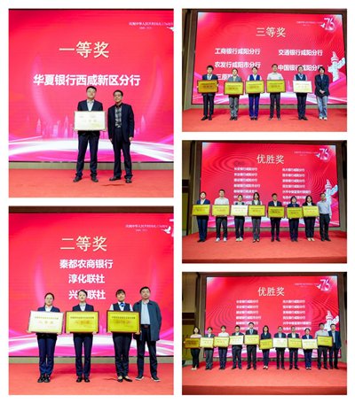 经过两个阶段的激烈比拼,最终,华夏银行西咸新区分行凭借出色表现勇夺一等奖;秦都农商银行、淳化联社、兴平联社紧随其后,共获二等奖;工商银行咸阳分行、交通银行咸阳分行、农发行咸阳市分行、中国银行咸阳分行及三原联社亦有不俗表现,斩获三等奖;长安银行咸阳分行等17支代表队获得优胜奖。