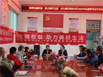 9月18日,在2025年陕西金融教育宣传周开展之际,光大银行咸阳分行联合咸阳市反诈中心、三原县反诈中心,在分行对口帮扶村三原县塔凹村乡村金融教育基地开展“防非反诈”金融教育宣传活动。
