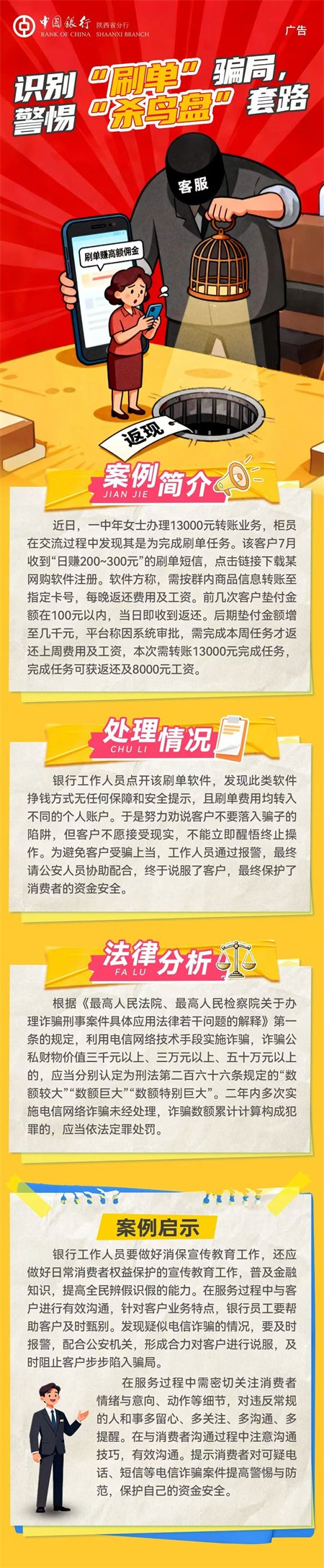 中国银行陕西省分行:识别“刷单”骗局,警惕“杀鸟盘”套路