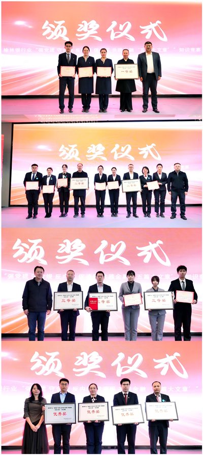 经过多轮激烈角逐,竞赛圆满决出各类奖项:邮储银行榆林市分行斩获一等奖,神木农商银行、农发行榆林市分行荣获二等奖,招商银行榆林分行、中信银行榆林分行、米脂农商银行获评三等奖,广发银行榆林分行、民生银行榆林分行、靖边农商银行、清涧农商银行获颁优秀奖。