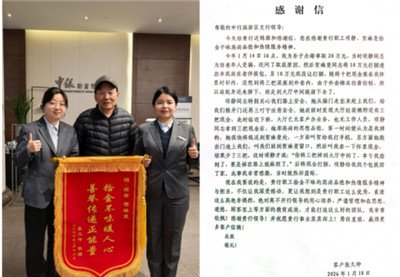 这一次,项静和贺琳斐将全部现金仔细捆扎,装入结实的布袋、封好袋口,随后将老人送出大厅。“贵行职工拾金不昧的高尚品德和热情服务的精神与担当,让我深受感动……”后来,张大爷在感谢信中这样写道。