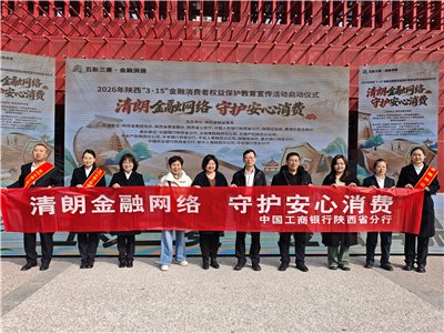 3月10日上午,由国家金融监督管理总局陕西监管局、陕西省委金融办、陕西省委网信办、中国人民银行陕西省分行等单位牵头举办的2026年“3·15”金融消费者权益保护教育宣传活动启动仪式在西安明德门广场隆重举行。工行陕西省分行应邀参与本次活动,以实际行动助力“清朗金融网络 守护安心消费”,帮助广大消费者不断提升金融素养和风险防范意识。