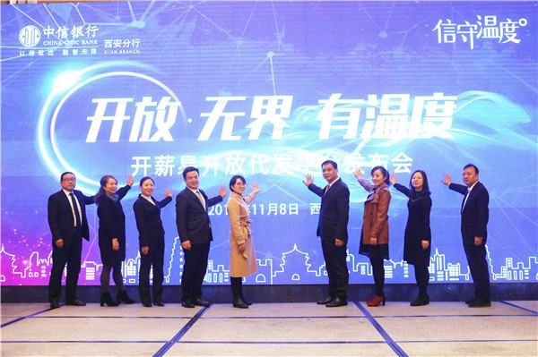 | 11月8日,中信银行西安分行举办“开放·无界·有温度”开薪易平台发布会,全省105家企业代表出席大会,共同见证开薪易开放代发平台正式发布,分行零售板块各部门、各经营机构相关负责人参会。